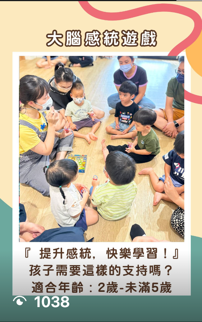 亮亮老師是專業的兒童職能治療師,老師將感覺統合相關的所有覺設計成遊戲方式,讓寶貝學習正確的感覺統合技巧用遊戲方式也讓寶貝能更無壓力學習、快樂的融入課程中一連串的遊戲,讓寶貝重複進行,一次次會看見寶貝越玩越好同時也帶來手作,給予手部發展的練習,培養抓握能力、手眼協調等等