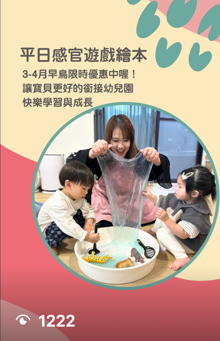每位家長都會擔心寶貝剛上幼兒園能不能適應?這堂課就是為了幫助寶貝順利銜接幼兒園生活!每週一個繪本主題,搭配遊戲、手作、感統活動,讓孩子在玩樂中學習,開心中成長。我們引導孩子練習聆聽、聽指令,透過自由探索與團體互動,發展感官與社交能力。在無壓力的環境中,孩子學到的不只是快樂,還有真正「帶得走的能力」。歡迎加入我們,一起陪寶貝快樂成長!