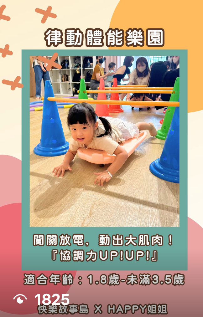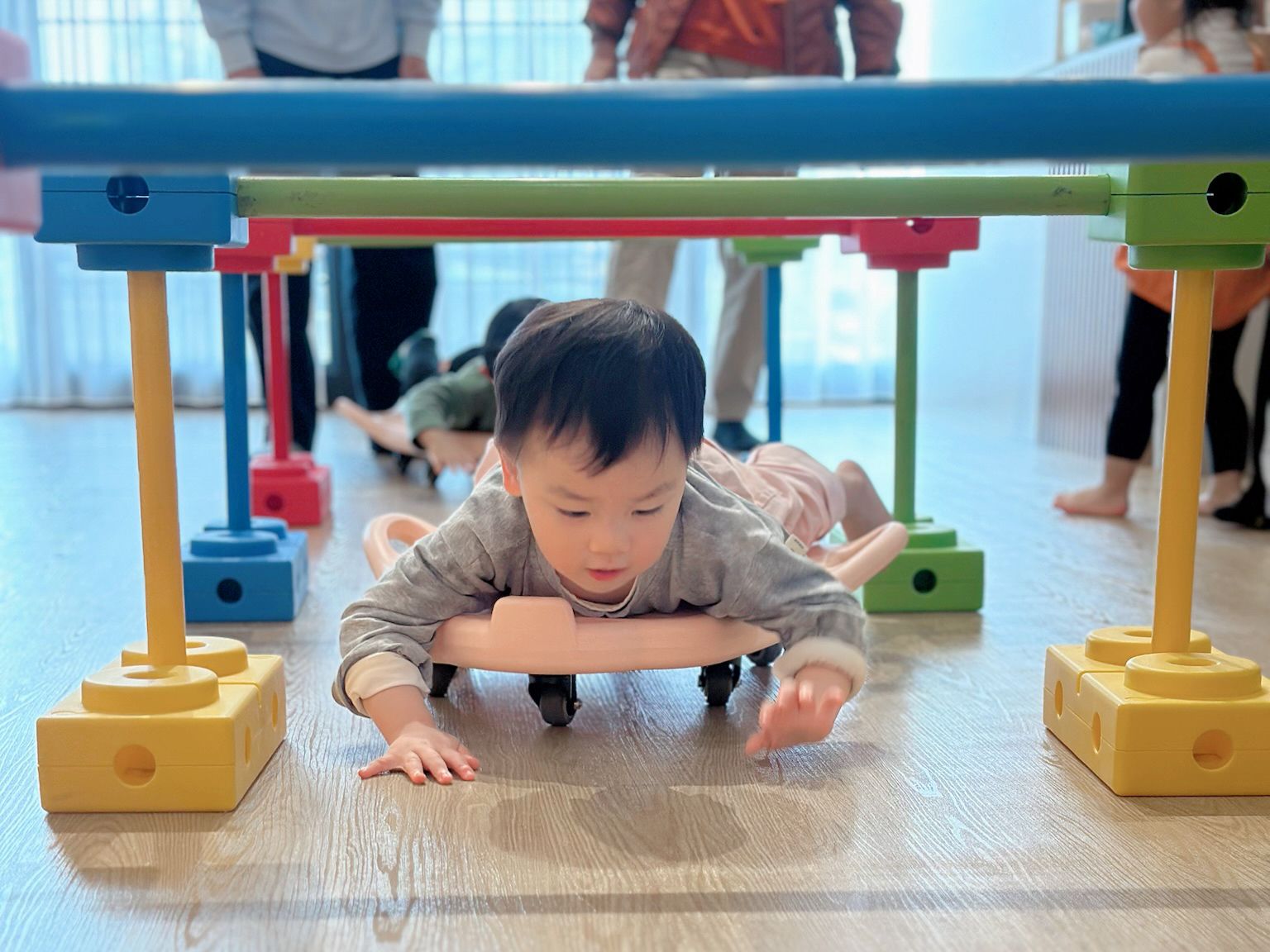 設計一連串遊戲關卡,讓寶貝有闖關完成任務的挑戰透過玩遊戲過程訓練大肌肉發展與肢體協調。